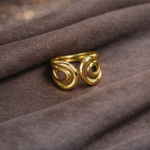Turn heads with the Gold Double Spiral Ring, featuring a striking twin-spiral design that wraps gracefully around your finger. Its fluid, symmetrical curves create a bold yet elegant statement—perfect for those who love modern, artistic jewellery.