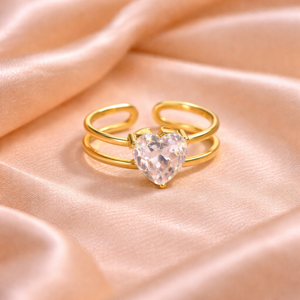 Add a sparkling touch of love to your jewellery collection with the Gold Stone Heart Ring. Designed with a beautifully crafted heart shape adorned with a shimmering stone, this ring blends elegance with a hint of glamour—perfect for everyday wear or special moments.